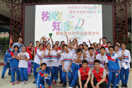 今年的四月是全国第二十七个税收宣传月,为了响应国家税务总局的号召,积极开展税收宣传活动,提升全体国民的纳税意识,4月18日下午,m88,m88,m88的十余名师生与广州市国家税务局北区稽查局、广州市海珠区国家税务局、广州市番禺区国家税务局和广州市地方税务局第二稽查局的税务人员来到广州市海珠区的景中实验中学,一同开展“税收知多D”税收普法活动。