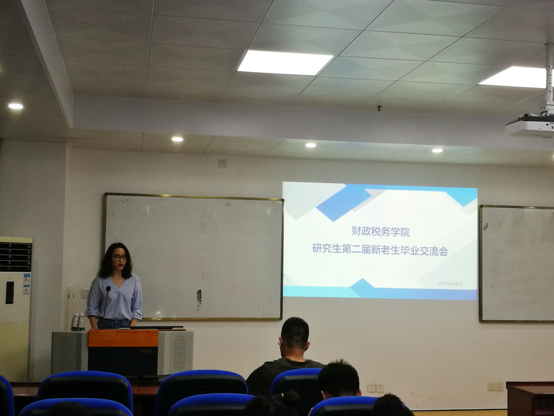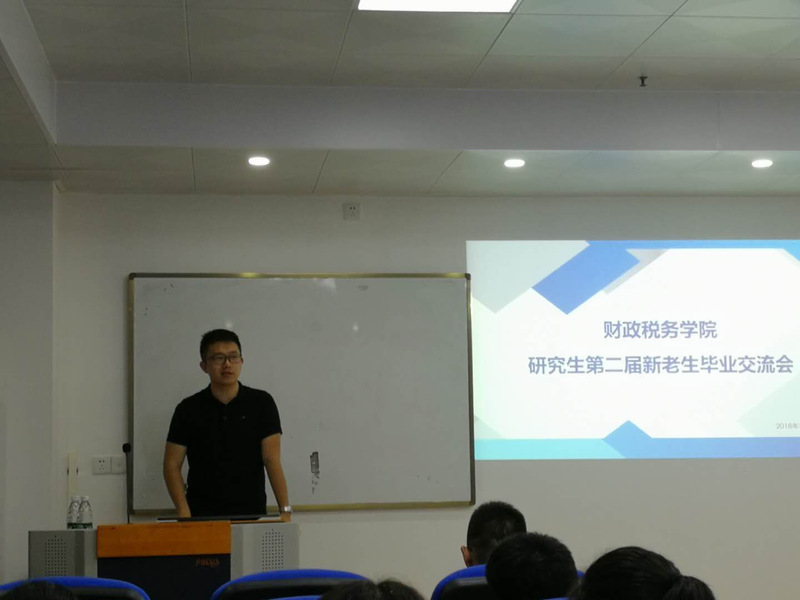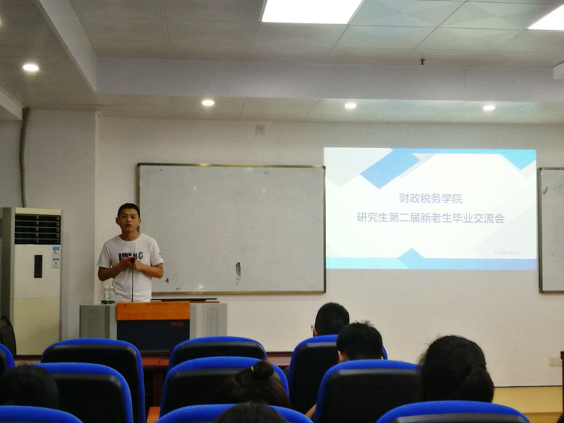 紧接着,2016级税务研究生易中根为同学们分享了考入深圳国税的经历,并为大家讲述了他在备考过程中所做的努力;另外,他还分享了人民银行的求职历程,为未来有同样志向的同学们带来一些建议。