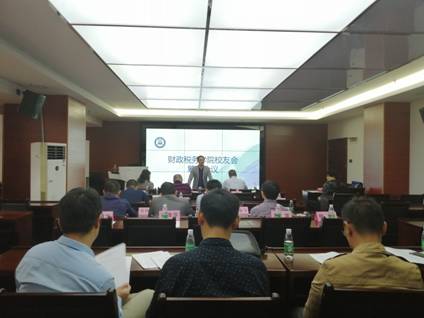 会议由党委副书记董锦红主持,出席人员包括校友办曹阳主任、财税学院党委朱信贵书记,各年级校友代表、辅导员王宝莹老师及在校学生代表。