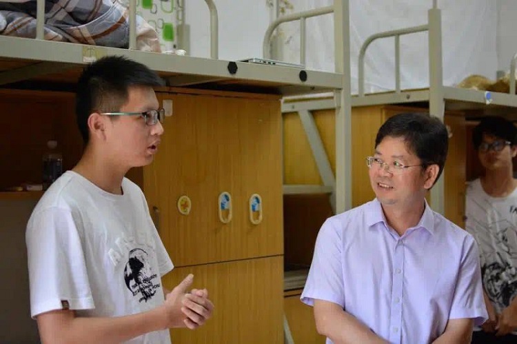 领导也高度重视此次在疫情下的返校,顶着炎热的太阳前来视察迎新工作,关注新生入学情况。学校党委副书记罗贤甲走访m88新生宿舍访问新生宿舍并与新生及家长进行热烈的交谈。