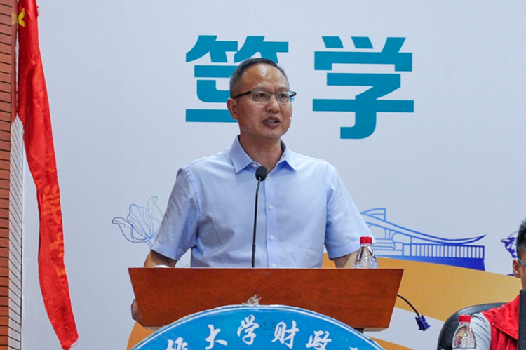 庞磊院长首先祝贺同学们在新冠肺炎疫情的严峻形势下刻苦学习,以优异的成绩考上广财,成为财税学子中的一员。他对新同学们的到来表示热烈的欢迎,并生动地介绍了学校和学院的建立、发展过程以及基本情况。