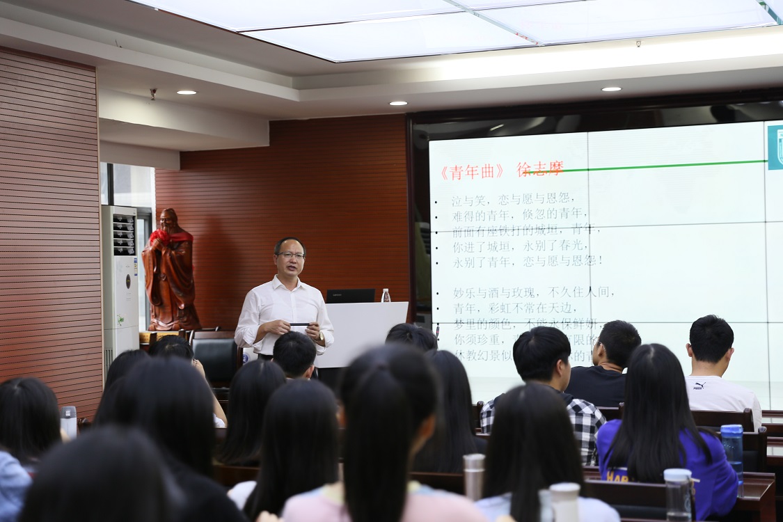 朱信贵书记首先由徐志摩的一首《青年曲》引入,告诉同学们要珍惜大好的青春时光,去打磨心智,练就强大的内心,同时要摒除那些不切实际的幻想,为实现理想与梦想而努力奋斗。