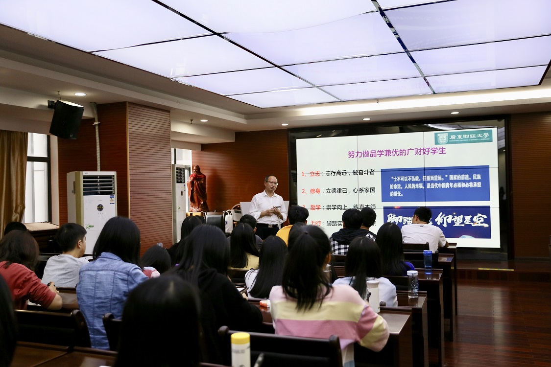 最后,朱书记寄语同学们都要努力做一个品学兼优的广财好学生,先从自己做好,然后再发挥带头作用,带领其他同学们从学习和生活各方面一起做出好的转变。