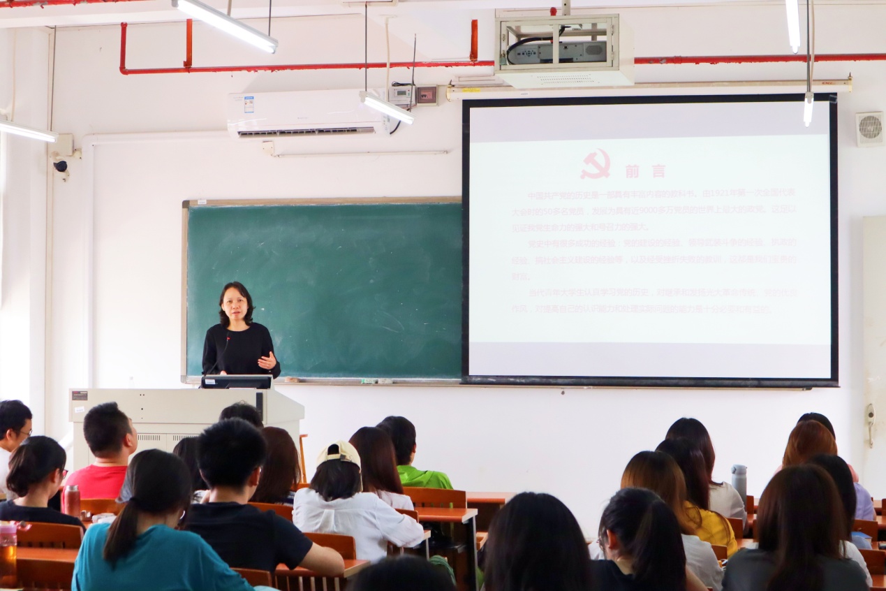 董锦红副书记结合m88专业特点,把中国共产党的故事向同学们娓娓道来。理论教学与具体事例相结合,恢弘的历史篇章与生动鲜活的先进人物相补充,深入浅出、生动形象地通过“开天辟地”“改天换地”“翻天覆地”“惊天动地”四个章节的内容,带领同学们快速回望了中国共产党百年来的奋斗历程。学习党史具有深刻长远的现实意义,广大青年能从历史中汲取智慧和力量,有利于赓续共产党人精神血脉,确保青年学生心往一处想、劲往一处使。