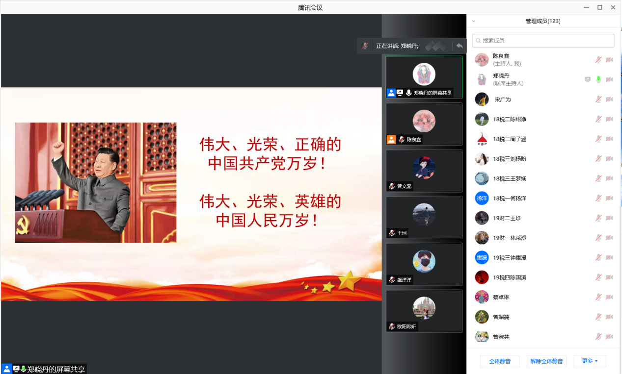 本次党课采用线上线下相结合的方式开展,留校党员在北二338参加线下学习,其他党员通过腾讯会议同步学习。