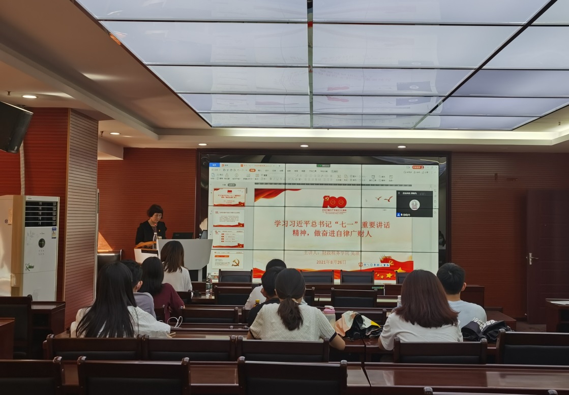 为深入贯彻习近平总书记“七一”重要讲话精神,推动党史学习教育进一步热起来活起来。2021年8月26日,m88党委书记吴瑛以“学习‘七一’重要讲话精神,争做奋进自律广财人”为主题,为全院研究生党员和本科生党员讲授了一堂主旨鲜明、思想深刻、立意高远的党史学习教育专题党课。