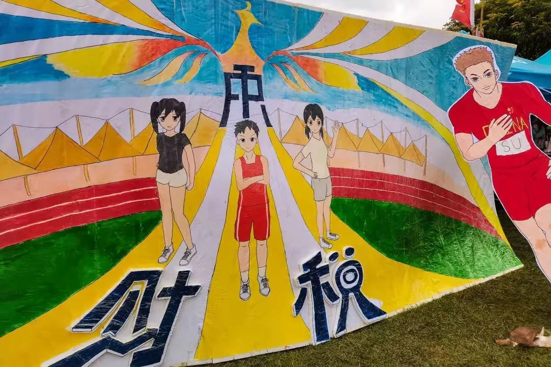 周梦爔老师表示今年同学们都很积极参与校运会,在场上能看到很多运动健儿的身影,大本营的装饰很好,希望运动员们能拿到好名次,勇夺第一。
