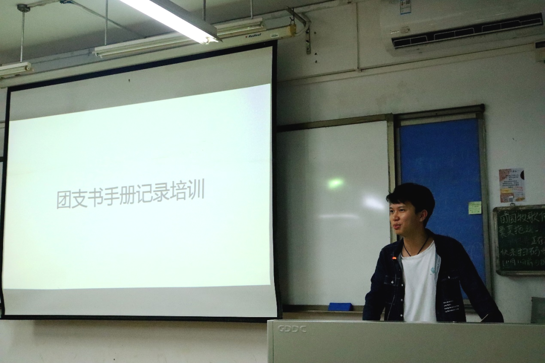 会议开始,20级税收学一班的团支书庄泽彬同学对团支书们进行团支书手册记录培训。庄泽彬同学就如何使用团支书手册、如何做好支部活动、如何办好班级团日活动以及如何填写支部委员会进行了详细说明。