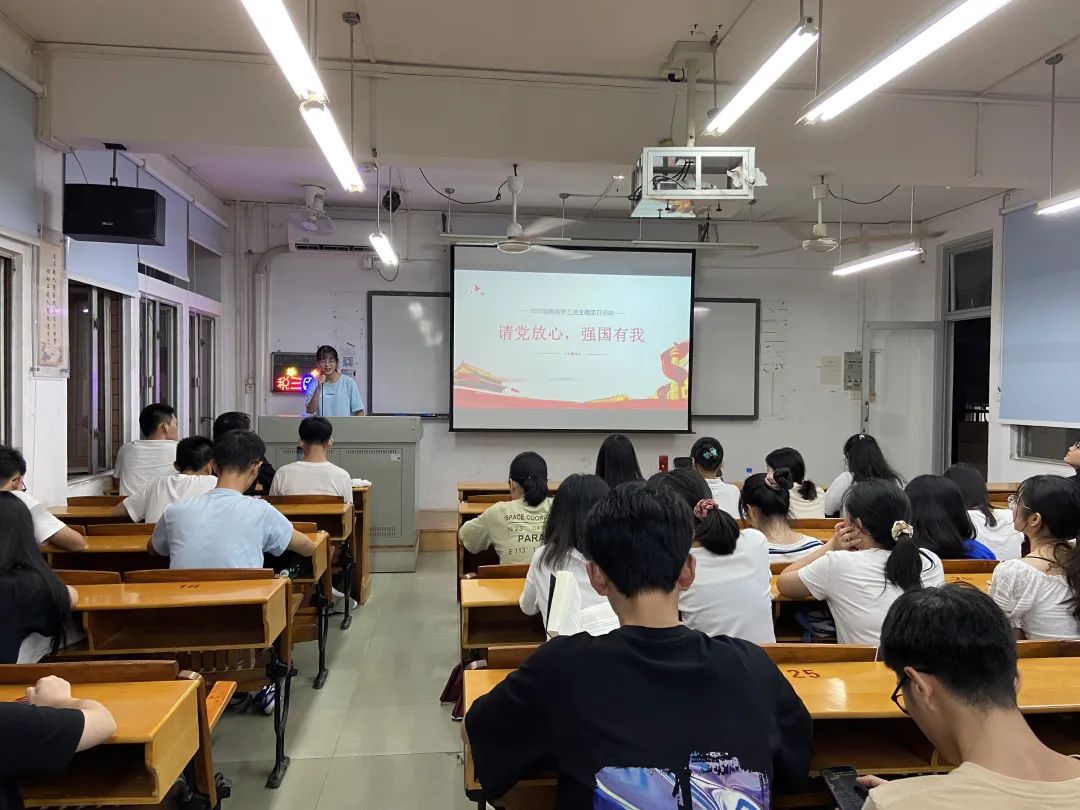 本次活动由《觉醒年代》混剪引入,紧接着学生代表发表感悟,然后进行党史知识竞赛及师姐分享身边的党员故事,最后由党史关键词你划我猜游戏及团歌演唱作为结束。