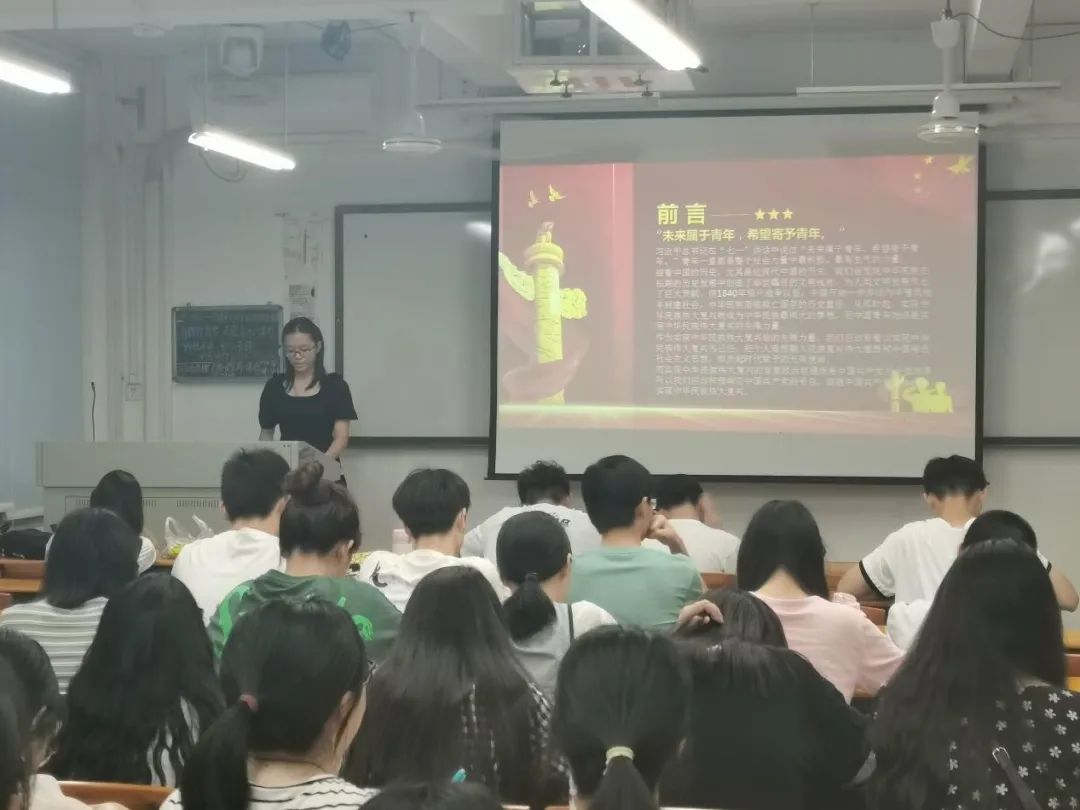 秉承着“请党放心,强国有我”的信念,21级财政学一班于9月25日开展了团日活动。活动上同学们激情演讲,讲述自己对于党史的见解,得到台下同学的肯定,引起共鸣。