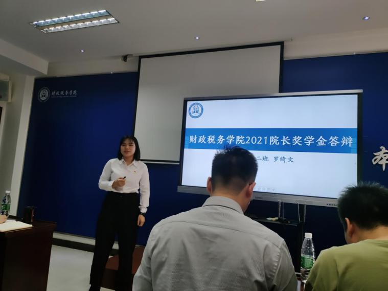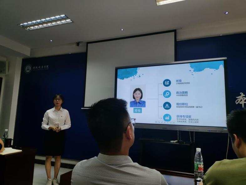 此次答辩大会分为两个部分。第一部分是PPT展示,候选人需要在5分钟内进行PPT讲解答辩;第二部分是在2分钟内评委进行提问,候选人回答问题。来自财税学院的25位候选人在台上展示了他们制作精良的PPT,他们谈吐得体、自信大方,展示着财税学子的青春活力。