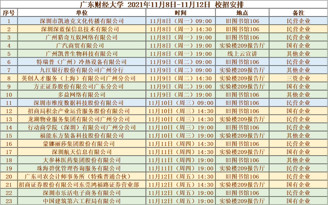 温馨提示:企业可能会因故临时取消宣讲会,系统会第一时间更新,但是周末的推文、学校的海报是更改不了内容的,所以同学们要多去系统上看宣讲会是否取消了。