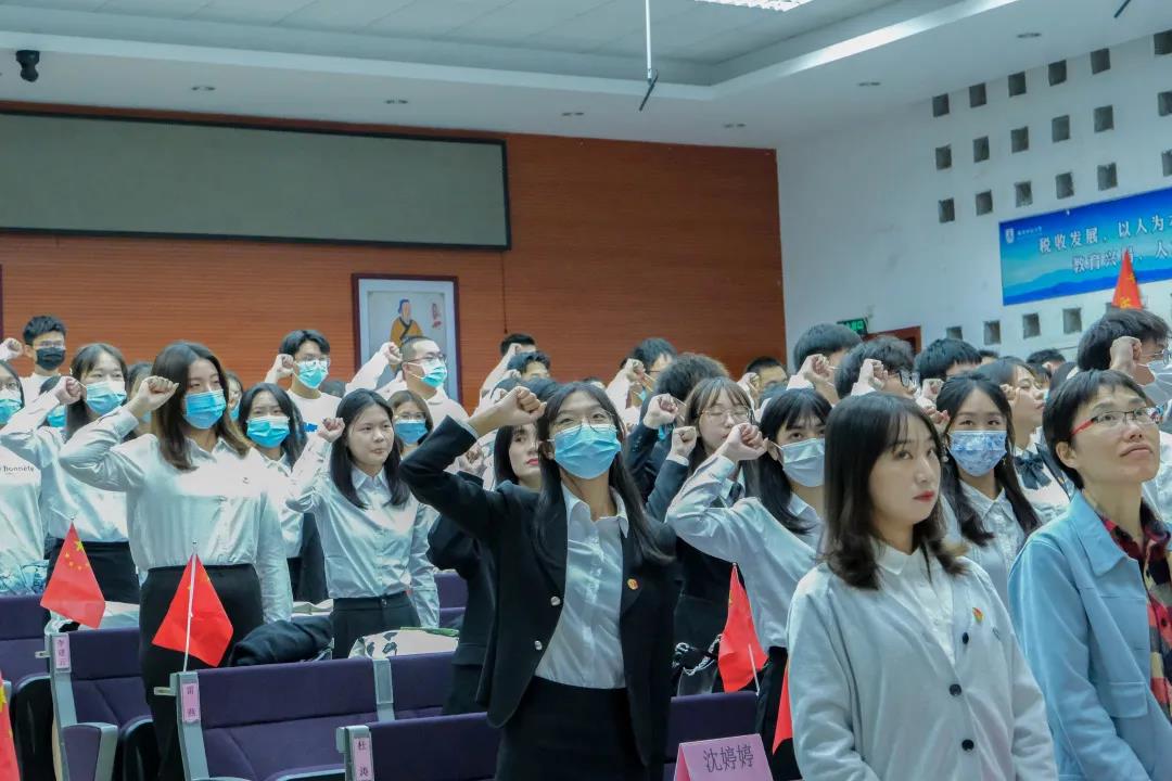 其后学生会执行主席陈国涛领誓,“......我以财税人命名,坚决维护学院的方针,坚决维护学院的名誉......”一句句铿锵有力的誓词,饱含了团学成员的信心与决心,激励着大家为打造“闪亮财税,铿锵之最”不懈努力。
