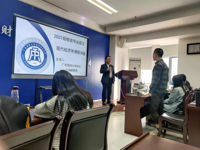 2021年11月30日,由m88主办的“财税发展史与当代税制改革”专题讲座在m88顺利举行。本次讲座主讲嘉宾为m88校长于海峰教授,m88陈淼副教授担任本次讲座主持人,2021级全体税收专业研究生参加了本次讲座。讲座采用线上线下相结合的方式进行,广州校区税收专业研究生到场聆听学习,佛山校区税收专业研究生采取线上方式进行学习。