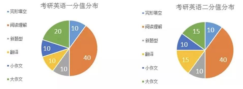 根据分值分布可以看出,无论英语一还是英语二,都是得阅读者得天下。