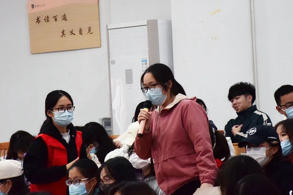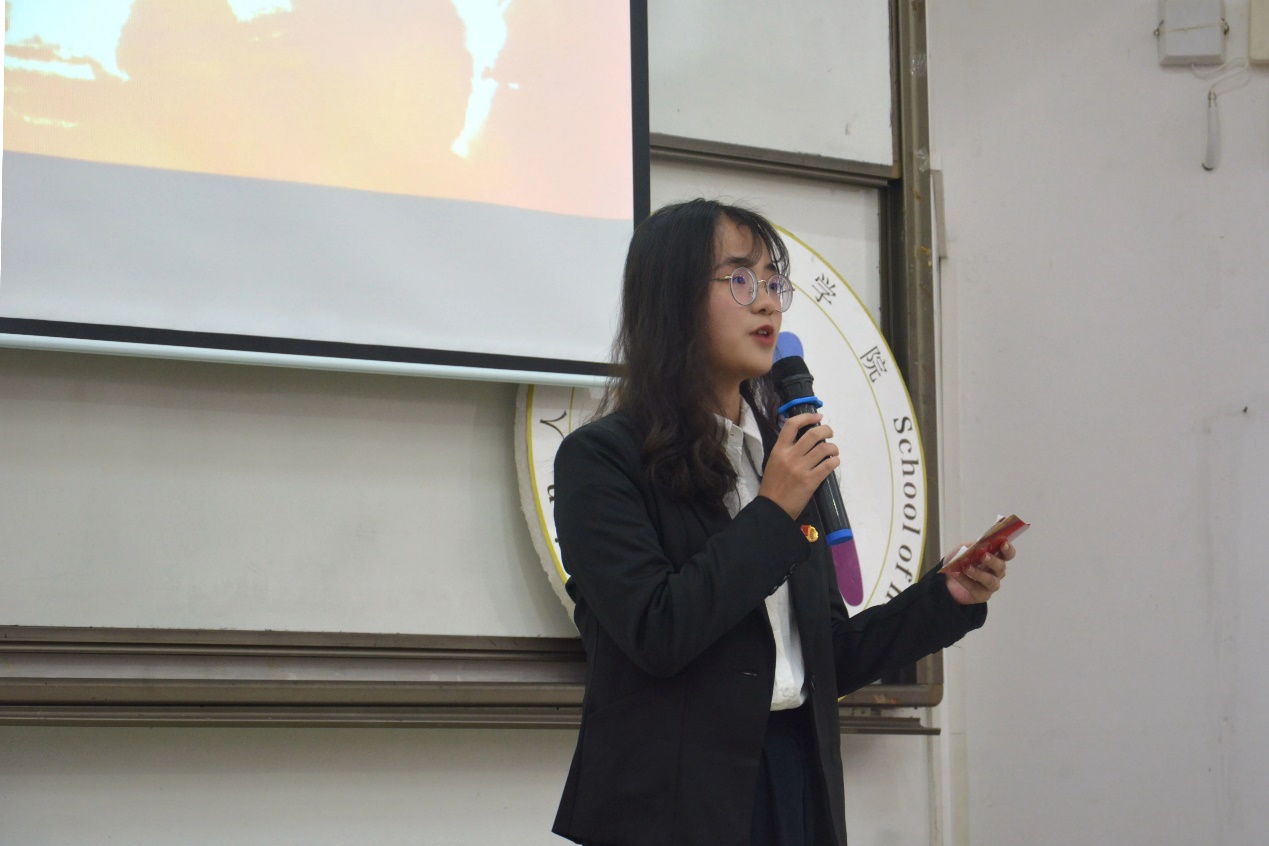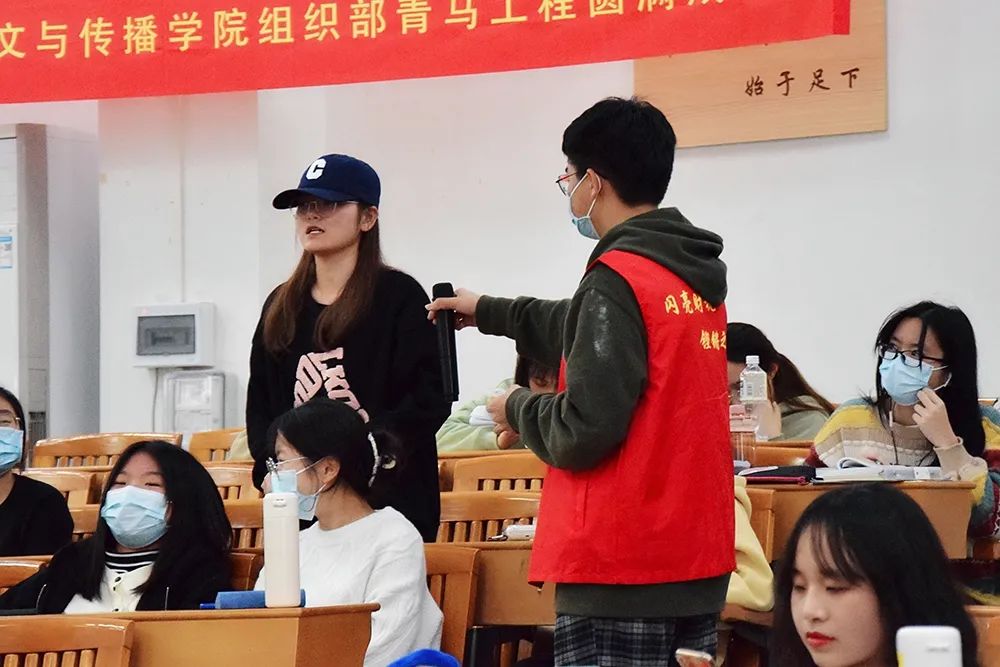 张丹丹老师开场致辞,她表示青马工程是面向大学生骨干、共青团干部和青年知识分子开展的培养项目,举办此次活动意义非同凡响,希望团学干部不断起到带头作用,调动同学们的积极性,并强调劳动教育的重要性,鼓励广大学子不断充实自己、加强自己的劳动观念、热情参与劳动实践、认真学习马克思主义新中国化理论。