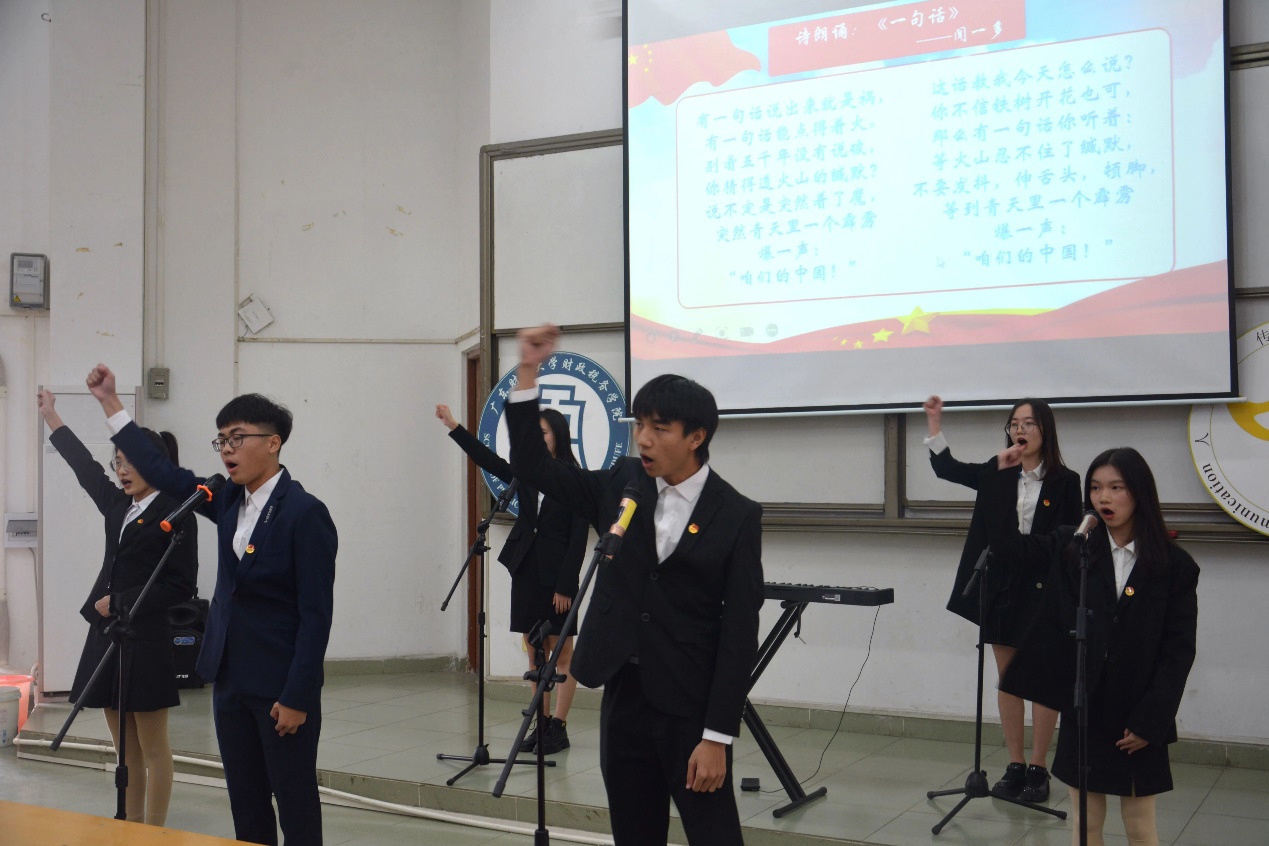 第四个出场的团支书队伍是青春中国队,为我们带来《五四版错位时空》。她们用歌曲和视频相结合,让当年的铿锵之音在耳边回响,展现中国如今山河无恙,国泰民安的祥和之景,点燃了大家的爱国之情,并号召大家与伟大祖国一起前进,不负年少,奋发图强。