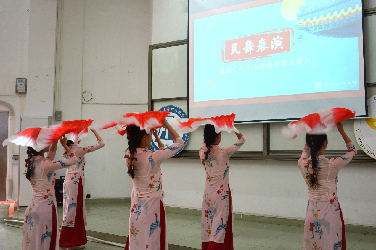 首先开场的是人文与传播学院的民舞队,为我们带来的表演是舞蹈《万疆》。她们用翩翩舞姿带我们领略了中国舞蹈文化的风情醇厚、多姿多彩、博大精深,感受中国历史文化长河的生息演进,流传不止。