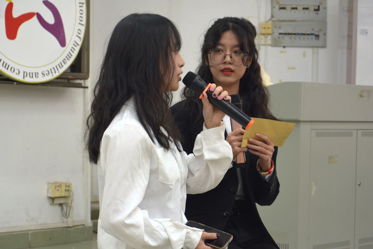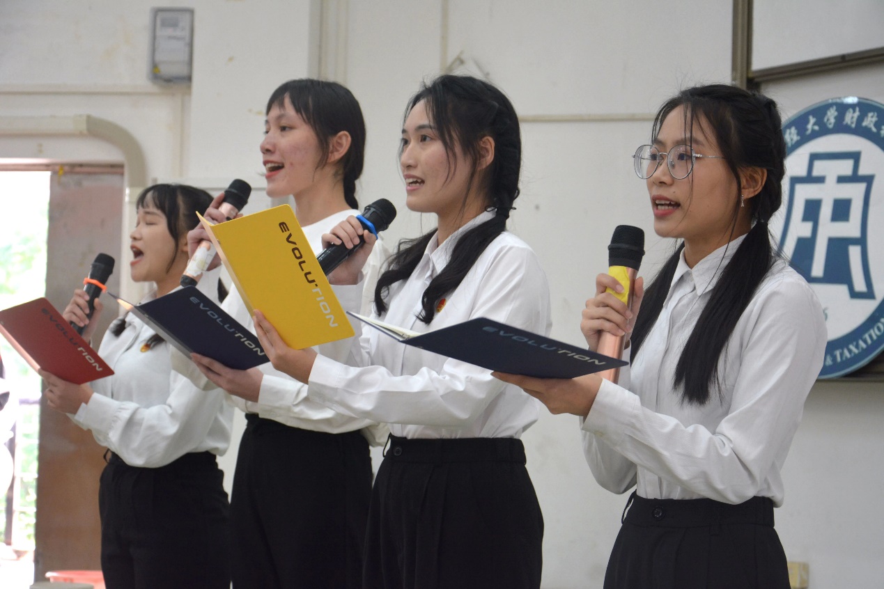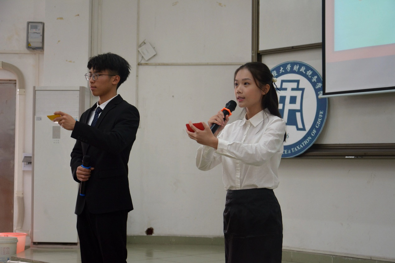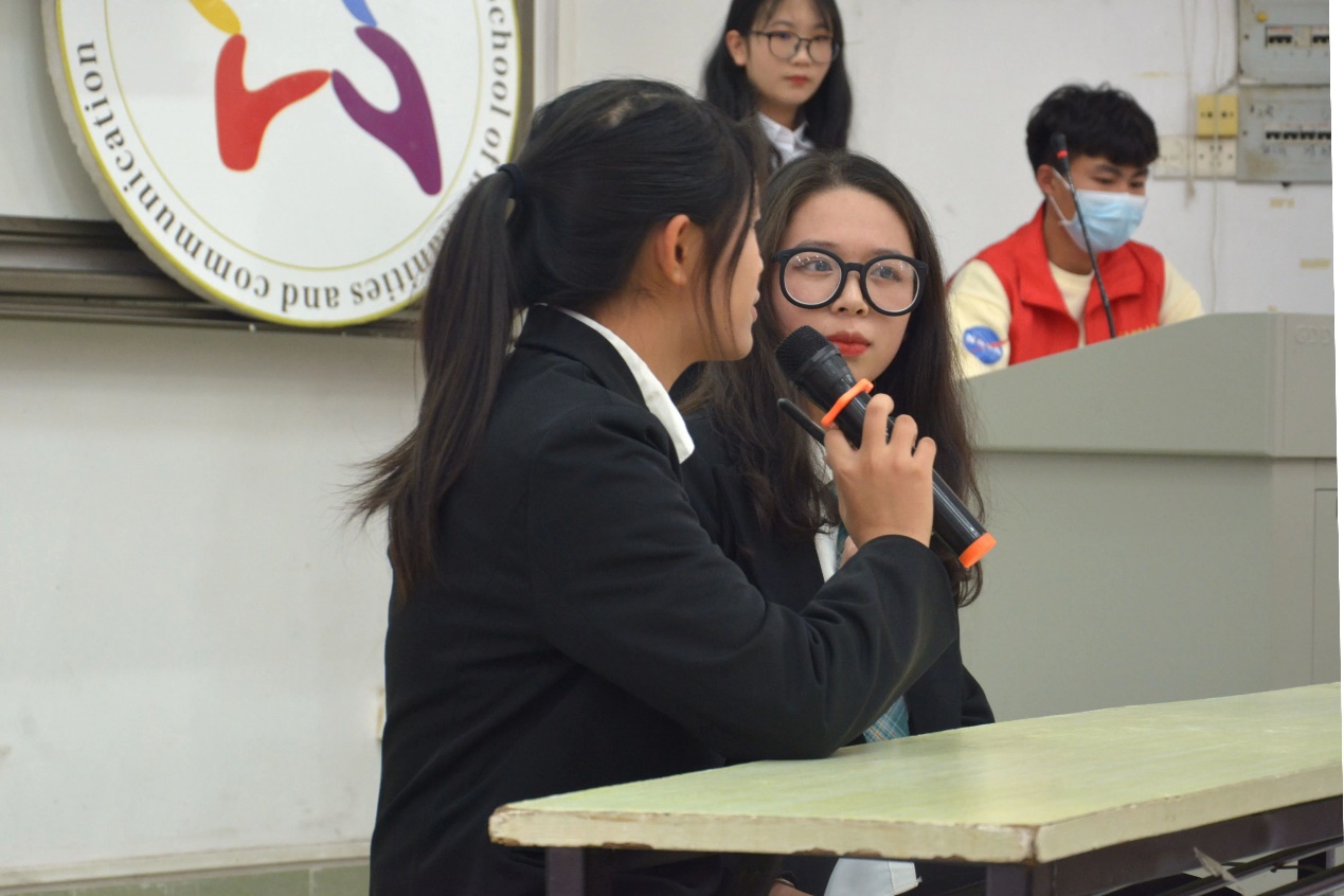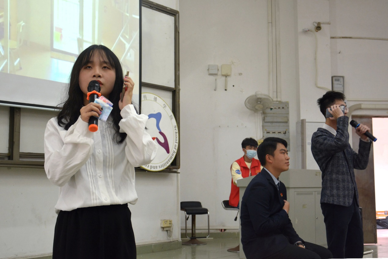 所有表演结束后,全场来到最刺激的有奖竞答环节。主持人与观众的精彩互动,在党史知识竞答中也加深了同学们对党史的了解,也再一次点燃了现场。