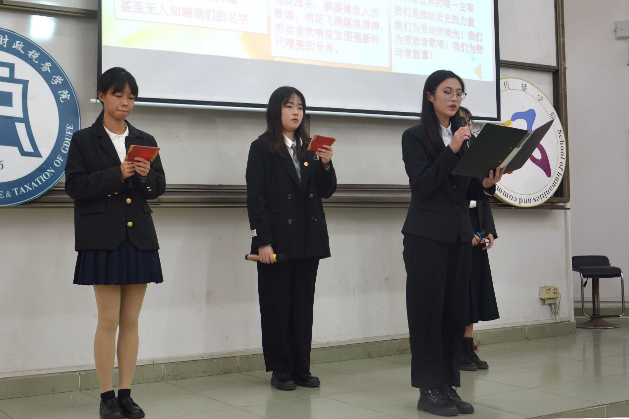 第三个出场的团支书队伍是小青马队,为我们带来主题演讲《展劳动之光,诵劳动之歌》。劳动之歌带来春播的佳音,捎去夏耘的希冀,团支书们声情并茂的讲解,真挚的声音平实却深深打动着我们的心,带我们走进那段青年奋斗的峥嵘岁月,致敬最美的劳动模范。