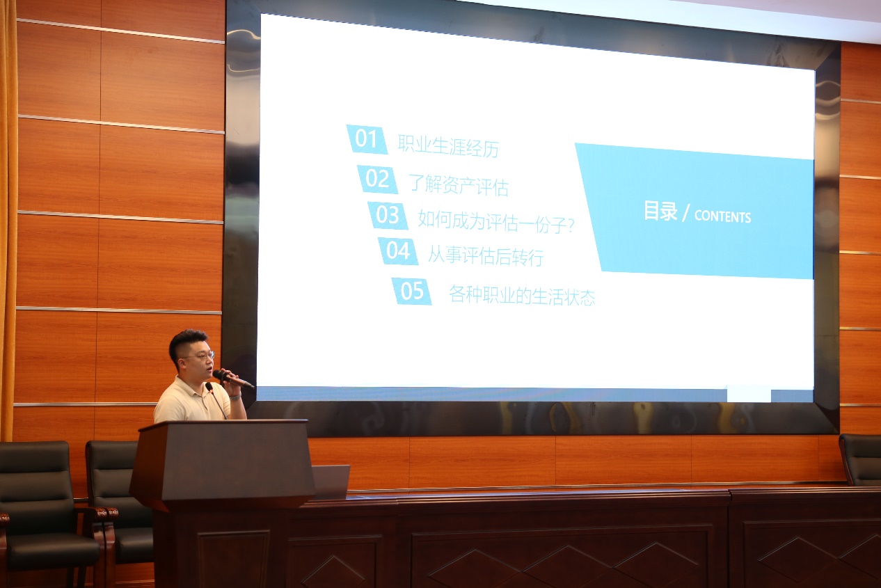接下来是中联国际评估咨询有限公司的陈挚友经理宣讲,他也是m88资产评估专业的校友。他从职业生涯经历、了解资产评估、如何成为评估一份子、从事评估后转行和各职业的生活状态这五大方面为我们分享他的职业经验。