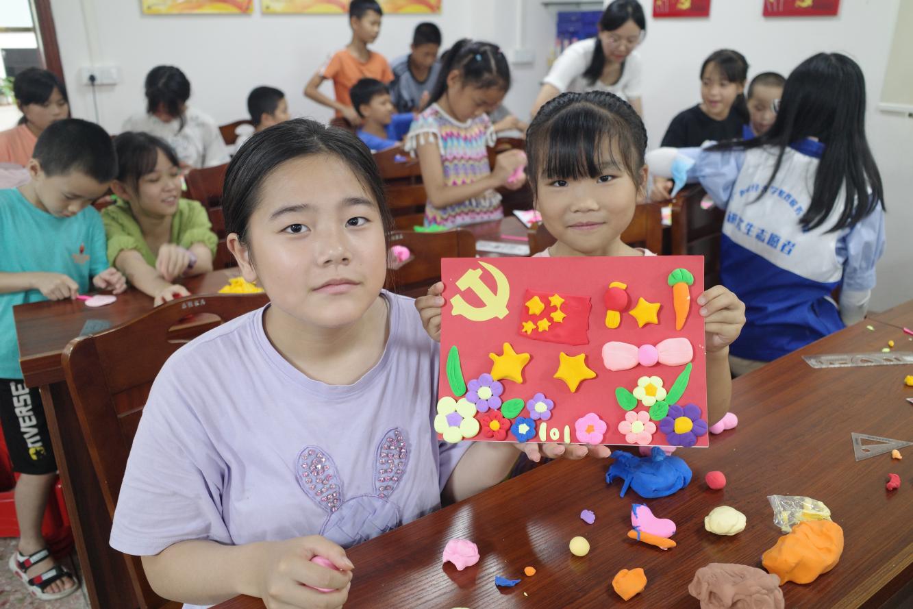 团队与蓝口镇委和榄子围村委会保持密切联系,推动活动走实走深。期间,“向阳花”团队以爱国主义教育为主线,以理想信念教育、社会主义核心价值观教育、中华优秀传统文化教育等为主要内容,为儿童开展“建党百年”红色教育系列主题活动,分别开设红色音乐课、红色舞蹈、红色手工等儿童喜闻乐见的义教课程,引导村里的孩子从小学党史、知党恩、听党话、跟党走,立志做新时代的好少年。