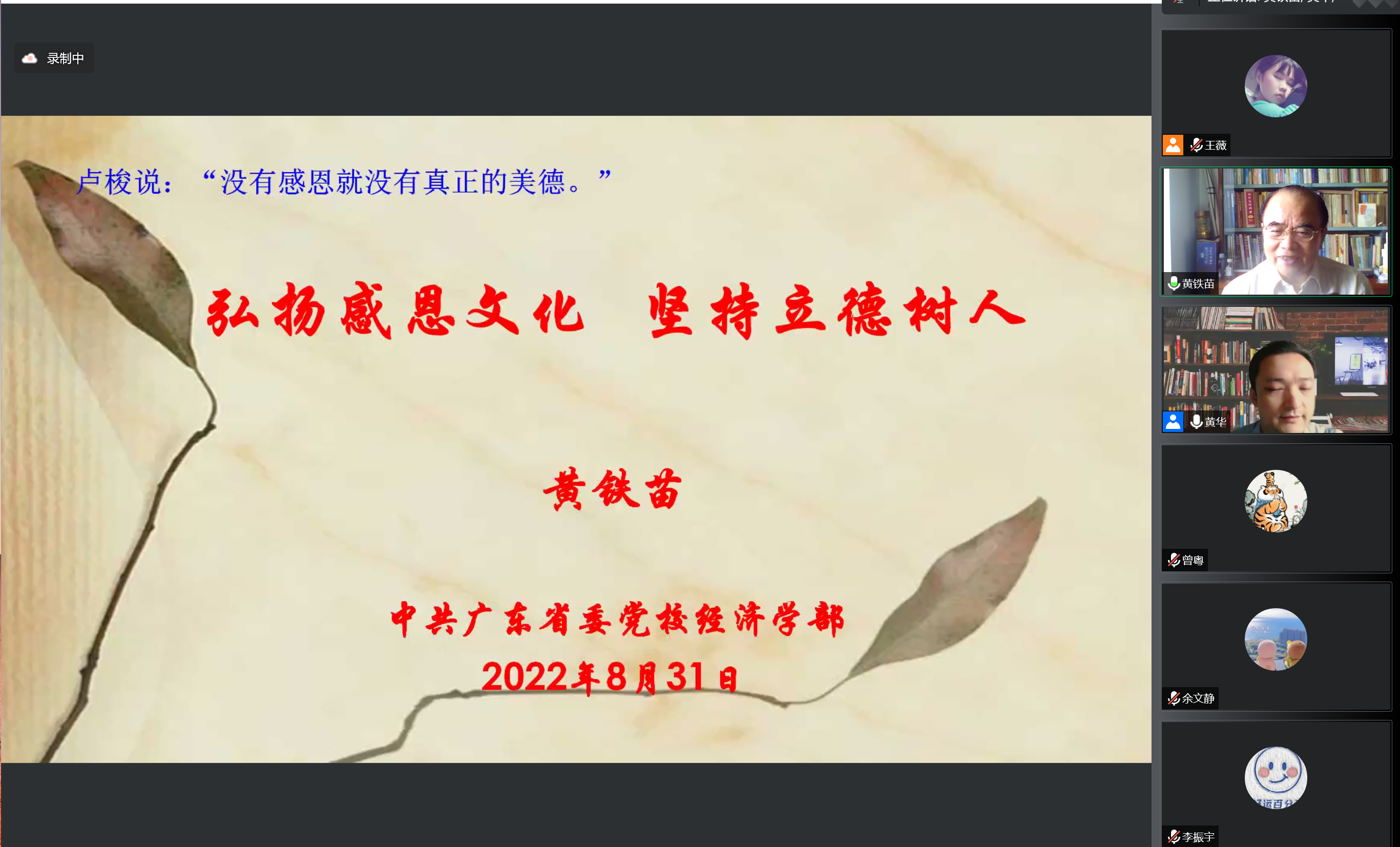 【理想信念与价值追求教育】中共广东省委党校黄铁苗教授从“感恩缺失的表现、原因和如何感恩”方面作“感恩教育”的主题讲座。对2022级的研究生新生提出寄语“愿我们都怀有一颗感恩的心,愉快的过好每一天”。