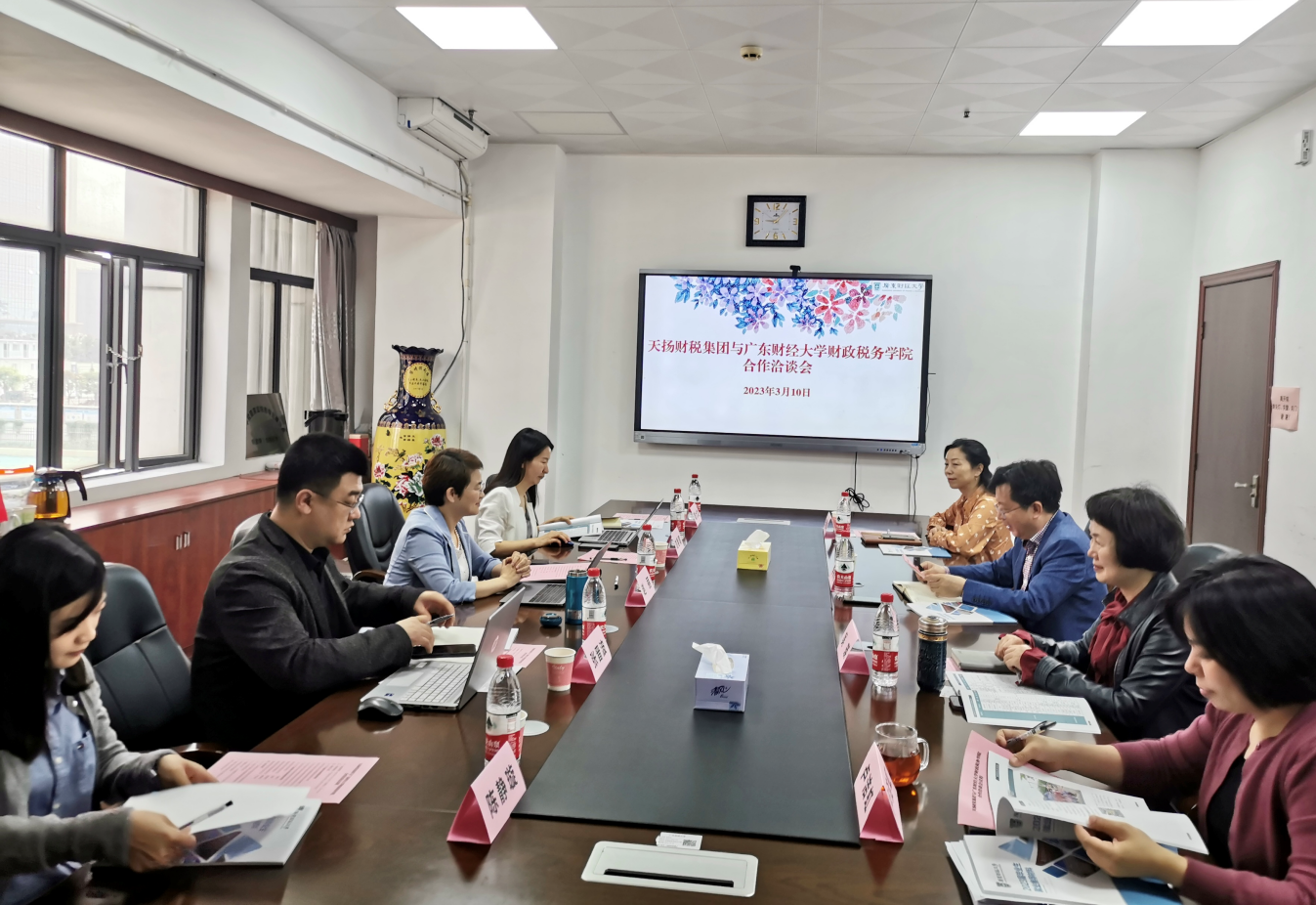 3月10日上午,北京天扬君合财税服务集团总经理赵丽一行到访m88,随行的有北京天扬君合财税服务集团副总经理兼广东所负责人刘艳青、广东天扬君合税务师事务所有限责任公司市场总监张晋波和人事经理陈静璇。学院院长李林木、党委书记吴瑛、副院长郑慧娟、党委副书记崔晓莹和办公室主任卢洁虹等热情接待了赵丽总经理一行。