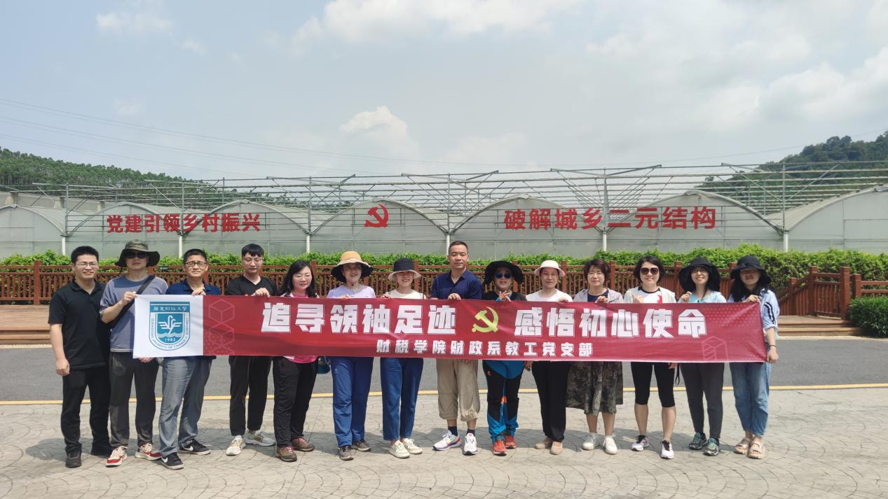 为深入学习贯彻党的二十大精神,进一步深刻领会习近平总书记视察广东重要讲话的精神实质和丰富内涵,5月21日,m88财政系教工党支部组织教工党员前往英德市连樟村,开展“追寻领袖足迹 感悟初心使命”主题党日活动,重走习近平总书记视察路线,重温总书记殷切嘱托,现场感悟领会习近平总书记重要讲话精神。