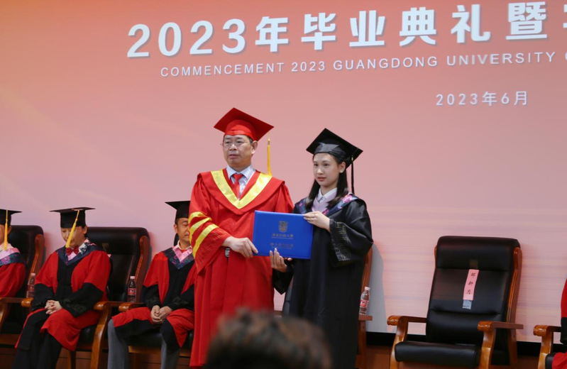 拨穗仪式是毕业典礼的重头戏,也是毕业生们最难忘的时刻。在拨穗仪式前,党委书记吴瑛宣读了学校关于授予2023届毕业生学士、硕士学位的文件。她向获得学位的毕业生表示祝贺,并祝愿毕业生们乘风破浪,筑梦远航。