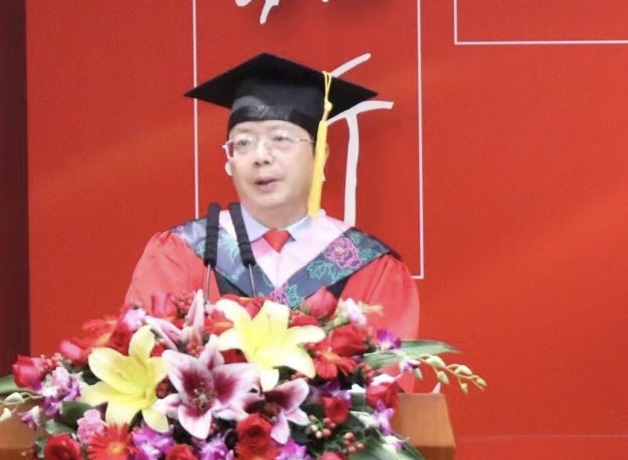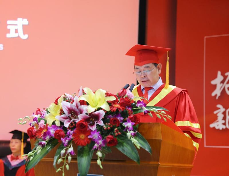 邹新月副校长在致辞中说到,2023届毕业生是最特殊、最不容易、更是最了不起的一届毕业生,他为同学们在与新冠疫情重叠的大学时光里积极配合学校防疫政策的行为点赞。他寄语毕业生们:一是要树立报国之志,做有理想、有担当、有奋斗、有作为的新时代好青年,做“心怀国之大者”,将个人的发展融入国家的进步。二是要牢记“厚德、励学、笃行、拓新”的校训,为人生新篇章打下坚实的基础。三是要心怀感恩之心,要感恩生命中的每一个人和每一件事,特别是父母和同学们的陪伴和帮助。他希望大家在未来的道路上能够勇敢地面对挑战,坚持地追求梦想,做到“千磨万击还坚劲,任尔东西南北风”。邹新月最后强调,母校永远是大家最温暖的家,无论身在何方,都欢迎财宝们常回来看看。