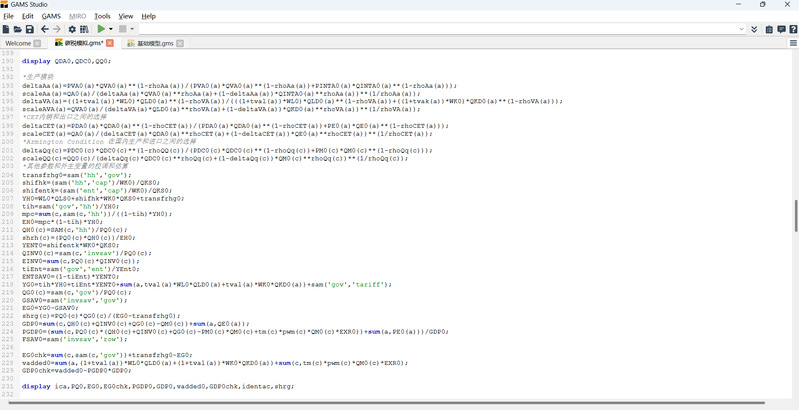 两位同学一直跟随陈淼老师进行学术科研,此前主要是运用灰色关联度模型进行较为简单的实证研究。了解到此次竞赛后,两位同学立即联想到绿色税制和碳税作为目前税收领域中的热点十分契合大赛主题,便第一时间报名比赛并着手研究。在阅读了相关文献后,两位同学发现目前学界对绿色税制实施效用的研究缺少在数据上的实证性研究,也缺少碳税对现行绿色税制缺陷弥补方面的研究,这恰恰可以作为论文的切入点。但是,碳税领域的研究方法主要是运用一般均衡理论进行预测分析,此理论涉及本科阶段尚未接触过的中高级经济学,其中的可计算一般模型(CGE)和动态随机一般均衡模型(DSGE)更是高级经济计量模型。数理基础较弱的两位同学面临着巨大的难题,他们多次讨论是否需要更换研究方向和方法。内心不坚定是学术科研的大忌,林正同学决心挑战可计算一般模型,于是他在网上广泛搜集相关资料,自学一般均衡理论和数学模型编程软件GAMS,终于在小半年的努力下完成了融入碳排放、碳税模块的CGE模型的代码。同时,曾怡平同学钻研了海量的文献,对绿色税制的优缺点提出了许多见解。最终在两位同学的通力合作下完成这篇约了一万五千字的科研论文。