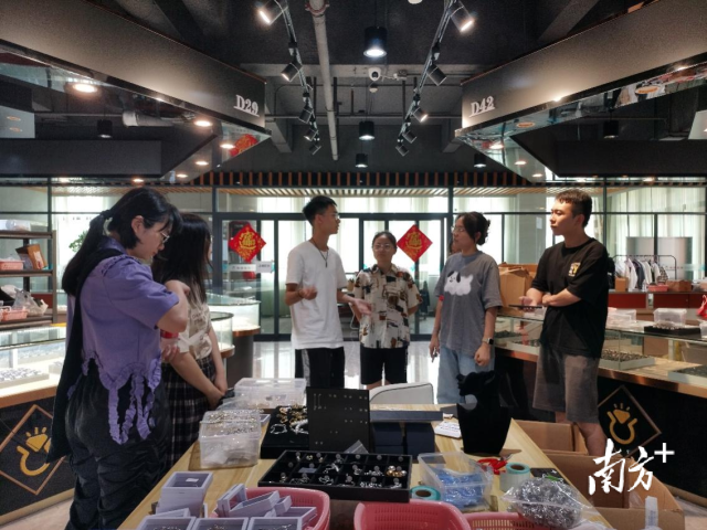 梅陇镇负责人向实践团介绍了首饰产业环保集聚区的三期规划以及六大功能区域。实践团成员通过整合产业园资源,从设计“网红打卡点”到打造数字化珠宝首饰展厅,充分发挥设计优势来规划梅陇的文商旅路线。