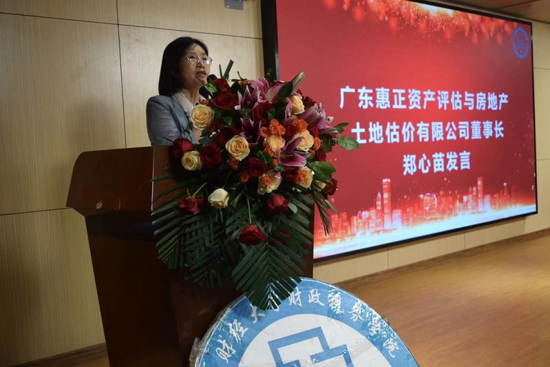 广东惠正资产评估与房地产土地估价有限公司董事长郑心苗发表了热情洋溢的致辞,她提到,公司三十周年时,决定要做一些有意义的事情,恰逢m88四十周年之际,特设立此奖学金,意义在于崇尚教育育人精神,鼓励学生认真学习。