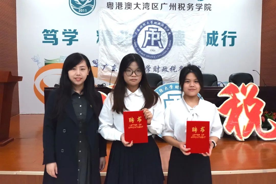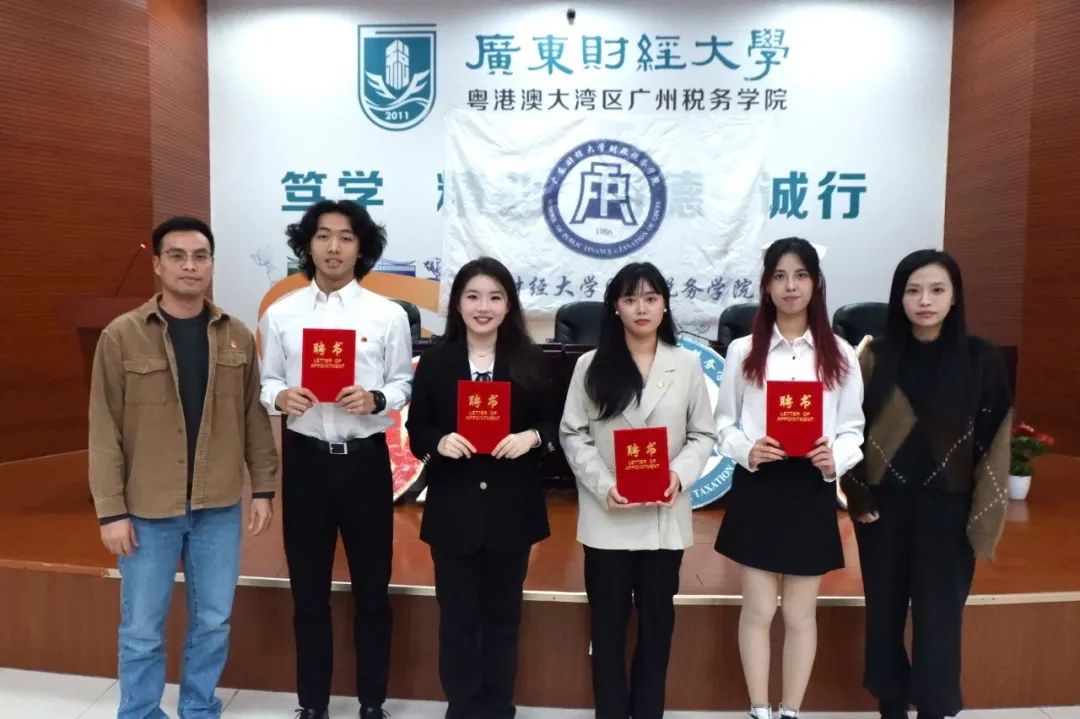 崔晓莹老师分别为m88广州校区团委学生会四位常委以及各部门负责人颁发聘书。