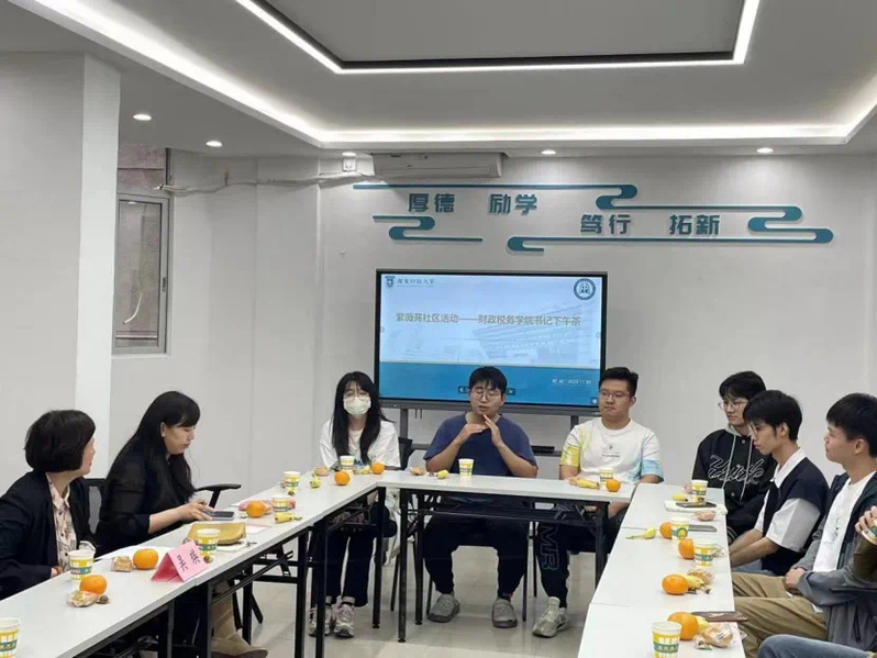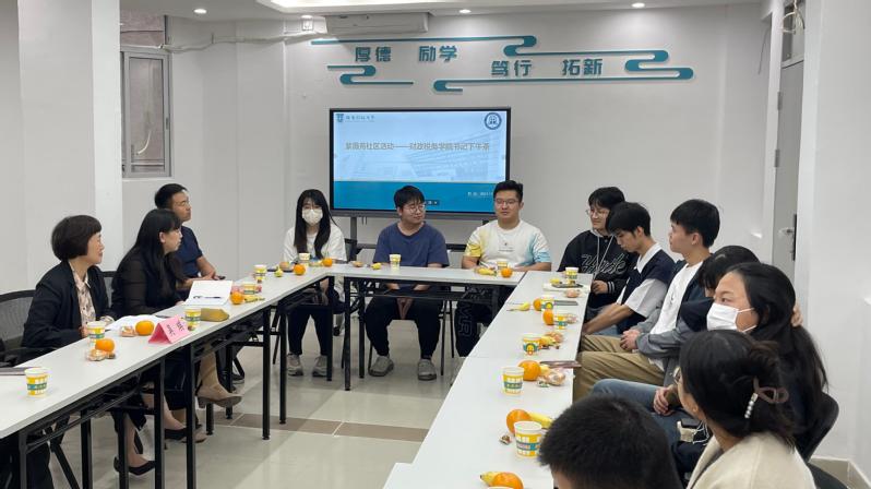 为推进一站式社区建设,拉进师生关系、深入了解学生情况与需求、听取采纳学生意见和建议,11月30日m88“书记下午茶”活动在广州校区紫薇苑社区举行。学院党委书记吴瑛、党委副书记崔晓莹、2020级辅导员张丹丹、2021级辅导员周梦爔、2021-2023级辅导员李威威与学院学生代表们参加此次活动,统计与数学学院党委书记林守忠也应邀参加活动。