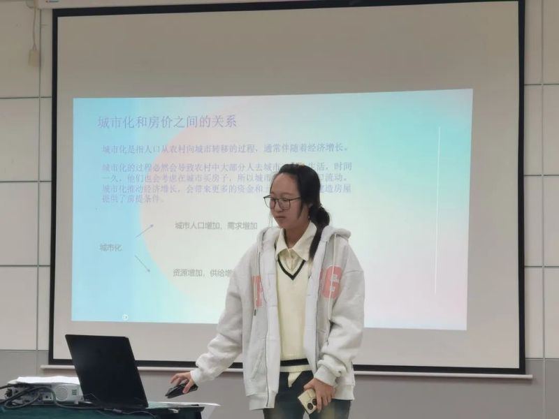 第二组张珈和张欣怡分别分享了兰小欢的《置身事内》和居民债务负担问题。张珈分享了城市化与区域发展不平衡问题;张欣怡同学认为当前我国居民的债务负担较高,且在持续快速上升,主要原因是房价的过快上涨。于井远老师建议大家多读经济类书籍,了解我国城市化问题,尤其是在我国现行的财政体制下思考城市化带来的各种影响。