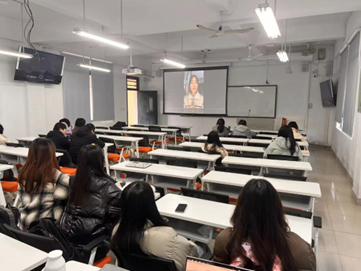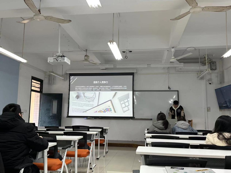 团支书梁志毅同学首先讲述了提升个人竞争力对大学生高质量就业的重要性,并分享了在大学期间大学生如何增加就业竞争力以及拓展就业渠道,最后还邀请了研究生师姐庞雨、郭玉婷为大家分享本科阶段的就业经历与选择。