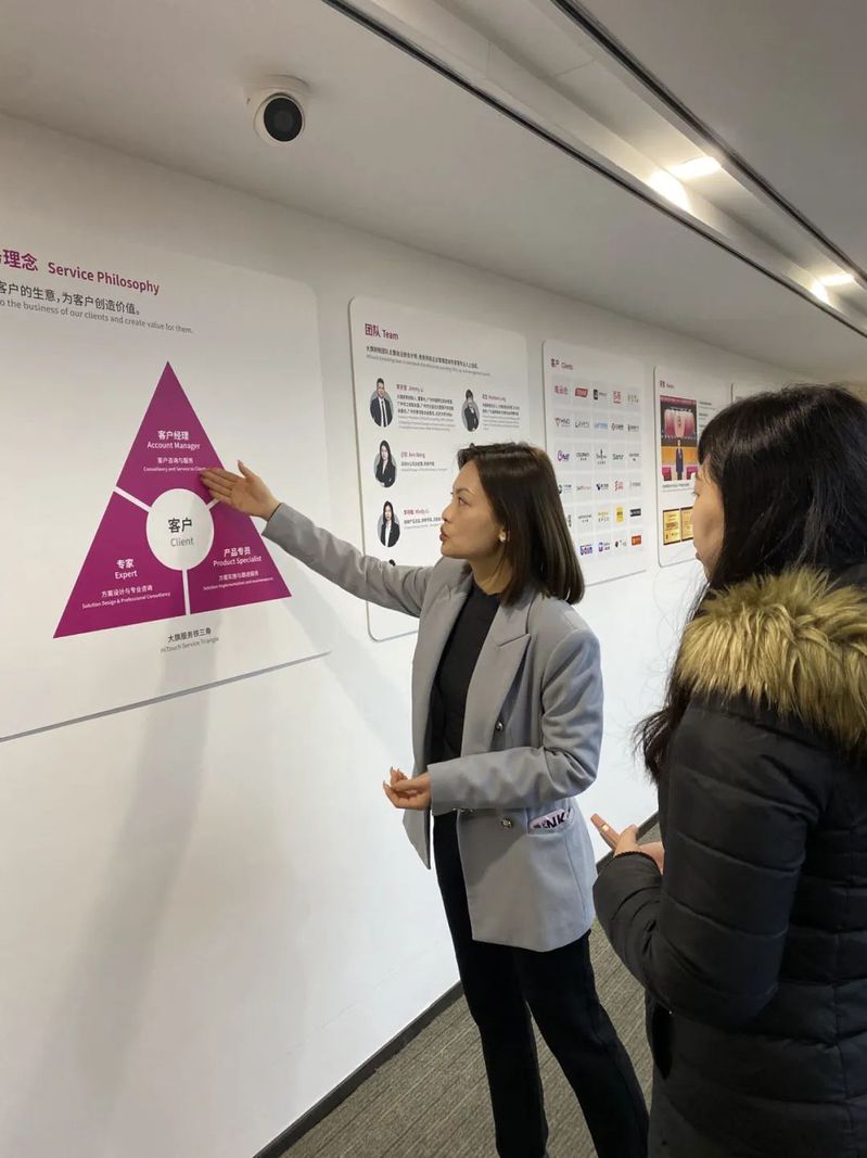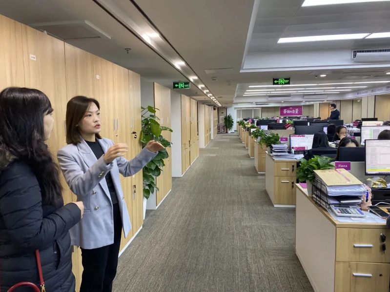崔晓莹一行首先在大旗财税合伙人、行政总监叶雯洁,HR蒋雨,财税专家、m88优秀校友杨柳青等带领下参观了公司的办公场所,在参观交流过程中,崔晓莹深入了解了公司运营、队伍建设、企业文化、主营业务、企业人才需求等方面情况。