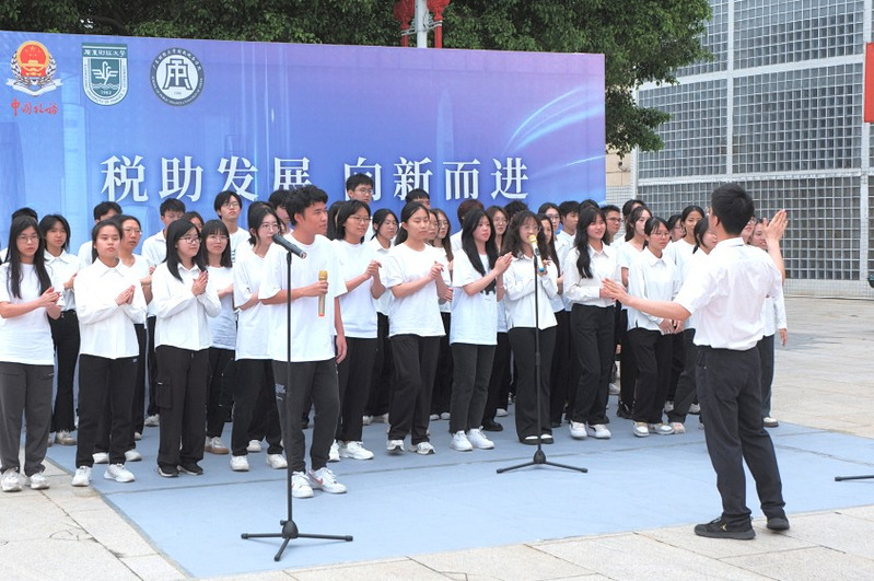 紧接着,由m88司朗队朗诵《歌颂新时代税务》和m88本科生与研究生合唱《稻香》,通过朗朗的余音和美妙的歌声表达了m88的同学们对第三十三个税收宣传月的美好祝愿。
