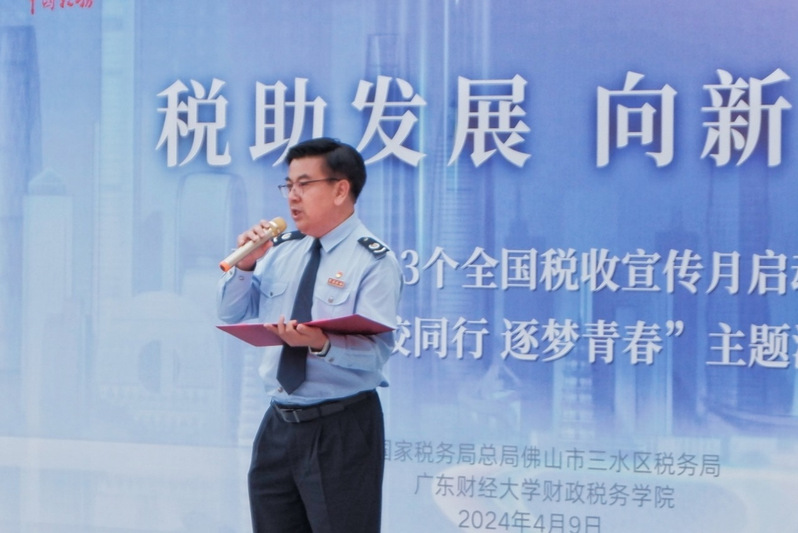 三水区税务局副局长易剑明表示,今年“税助发展 向新而进”的税宣主题目的在于精准落实各项税费政策,全力支持加快培育发展新质生产力和推动高质量发展。三水区税务局将会持续深化税校合作,创新税收普法的形式,加力推进“税法进校园”活动,推动税收普法宣传直达大学生群体,进一步丰富大学生创业就业的指导服务形式,让税收的“种子”在朝气蓬勃的大学校园落地生根。