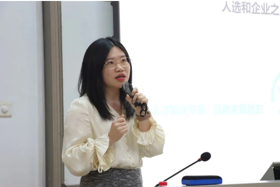 梁晶莹女士则通过分享自己从实习生到猎头总监的职业历程,强调努力和机遇同样重要,只有努力提升自己的能力,敢担当、能吃苦、肯奋斗,才能牢牢把握时代赋予的机遇。她鼓励同学们走出“人云亦云”的误区,了解自己的专长。在职场中也应学会复盘和坚持,保持乐观向上的心态,积极应对职场中的挑战。