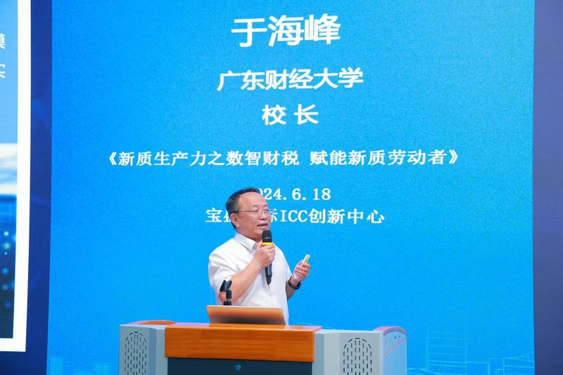 于海峰在活动中作“新质生产力之数智财税”赋能新质劳动者主题演讲,强调数据在数字经济时代的关键作用,数智技术在财税领域的应用价值,数智财税在促进产业发展中的重要作用。表示学校将进一步对接大湾区经济发展需求,深化校企合作,推进数智财税领域研究,为大湾区发展赋能。