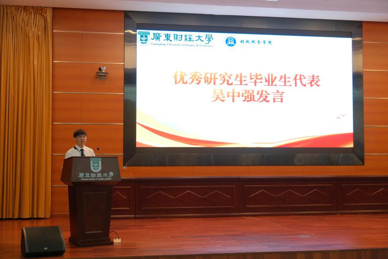 吴中强向师弟师妹们分享两点感悟,一是坚持在干中学,学中干;二是要珍惜在学校的这段宝贵时光,珍惜身边的每一个人和每一份经历。三年财税人,一生财税情。最后,吴中强代表毕业生们再次向母校、向老师们表达最真挚的感谢和崇高的敬意。