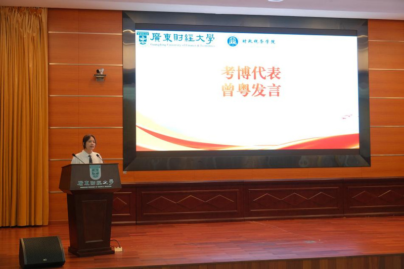 曾粤回首两年在广财的时光里,从刚来到广财的迷茫无措,到优秀学生干部等荣誉的眷顾。从科研小白,到参与科研项目、撰写学术论文,再到成果获得省级荣誉、考取中南财经政法大学博士研究生,以一名“经世济民”财经人要求自己。她祝愿大家在未来的征程中,以平凡练就自己,以不凡要求自己,在繁华中自律,在破败中自愈,不弃良知,不失尊严,纯粹而执着的前进,绽放属于广财学子的荣光。