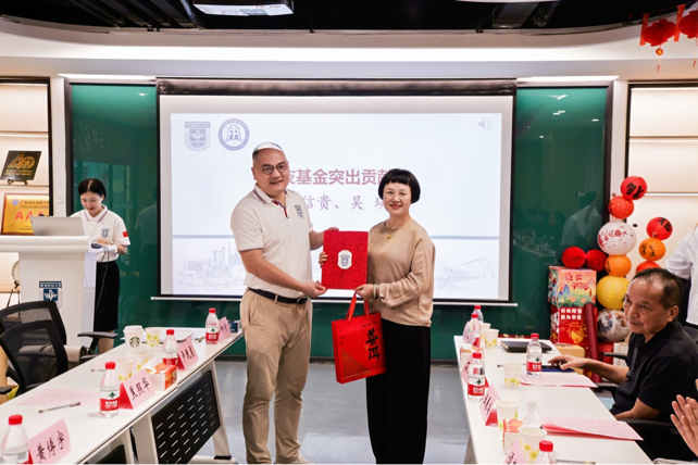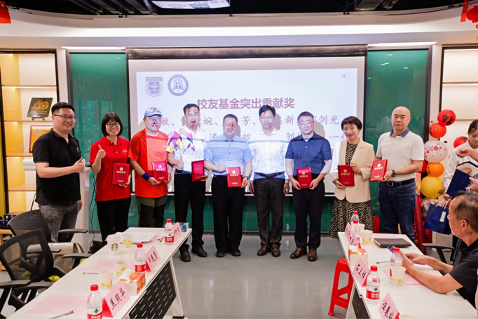 朱信贵、吴瑛、校友唐敏、薛德婉、雷生华、周芳、吕志新、孙伟斌、罗志荣、李军、凌青、邬剑光、潘宇、吴雄伟、梁海涛、苏玉莹、李耿成、庞韶军、郭树恩、周宏、杜丕冕、张伟、杨文涛、吴剑雄、伍剑华、黄扬易、王一枝、潘慧玲、刘子鹏获突出校友基金贡献奖。