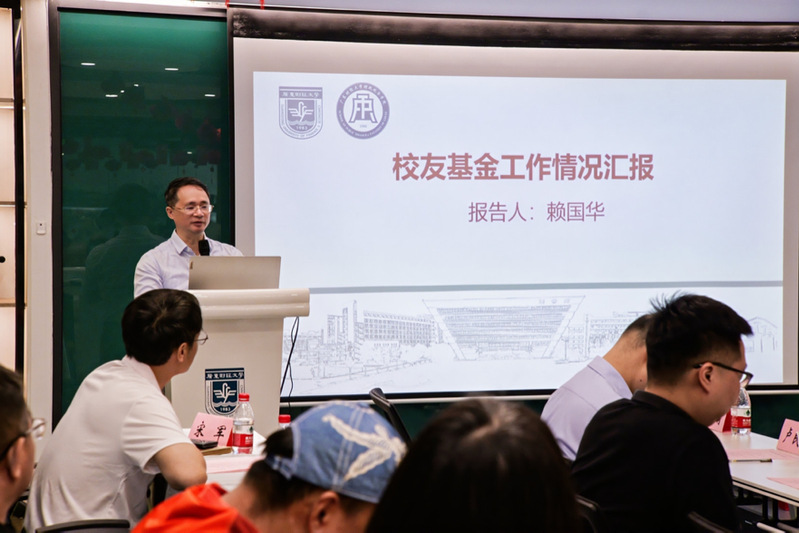 随后,校友基金会会长赖国华会长汇报了校友基金的工作情况。自基金会成立以来,给予多名表现优异、家庭贫困的学生以帮助,同时也不遗余力支持学院、学校的发展。