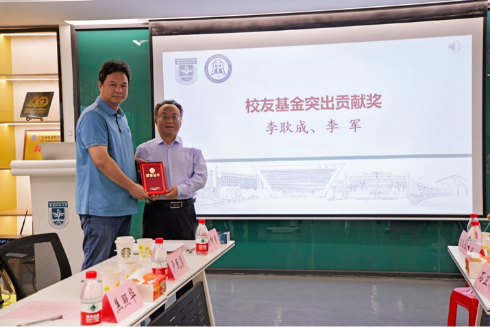 朱信贵、吴瑛、校友唐敏、薛德婉、雷生华、周芳、吕志新、孙伟斌、罗志荣、李军、凌青、邬剑光、潘宇、吴雄伟、梁海涛、苏玉莹、李耿成、庞韶军、郭树恩、周宏、杜丕冕、张伟、杨文涛、吴剑雄、伍剑华、黄扬易、王一枝、潘慧玲、刘子鹏获突出校友基金贡献奖。