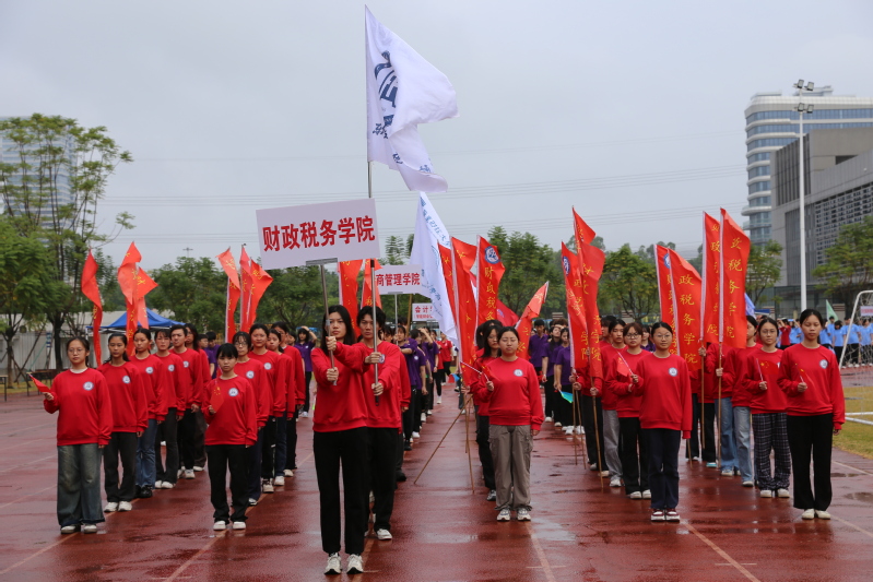 方阵行进中“闪亮财税”的口号振奋人心。财税学子双臂挥扬,身姿矫健,犹如一道道闪电划破天际,照亮了操场的每一个角落。
