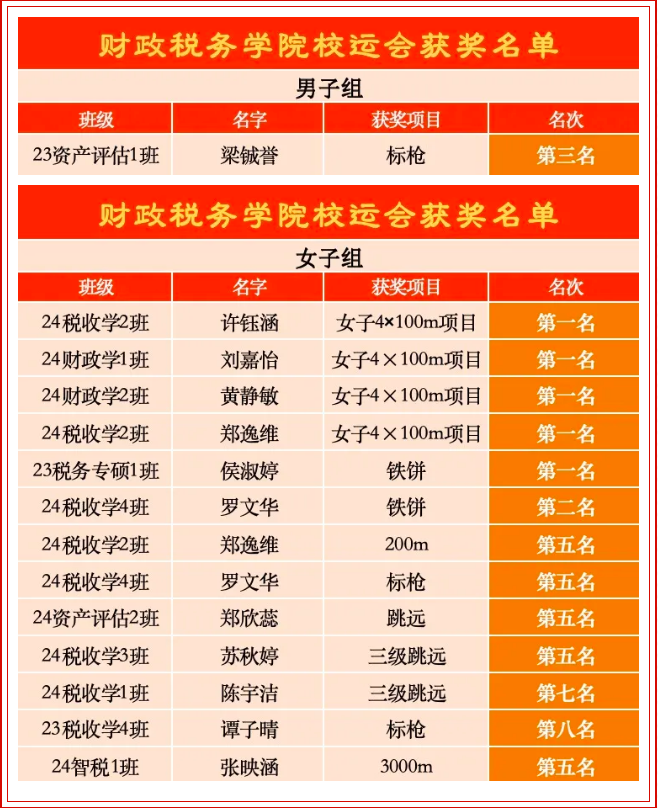 运动场上,财税健儿努力拼搏,奋力争先;运动场下,拉拉队员们摇旗呐喊,为运动员们加油鼓励!穿着蓝色志愿服的财税志愿者们也积极参与各项保障工作,那一抹抹“财税蓝”成为本届运动会的一道亮丽风景线。凭借财税健儿们的精彩表现,以及运动场下全体师生的辛勤付出,本届运动会中,学院获得了“精神文明奖”称号,以及女子团体第四名,男女团体综合第八名的好成绩。其中,女子4X100米接力更是打破m88运动会记录,勇夺冠军。下面请跟随着精彩的文字和图片,共同回顾这充满了青春力量的时刻!